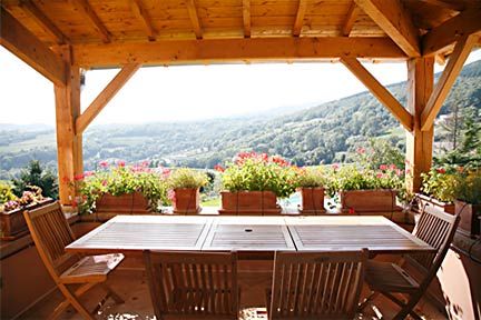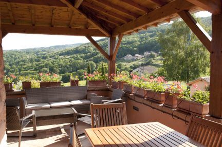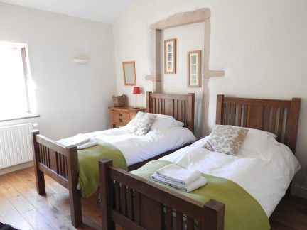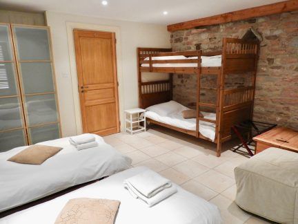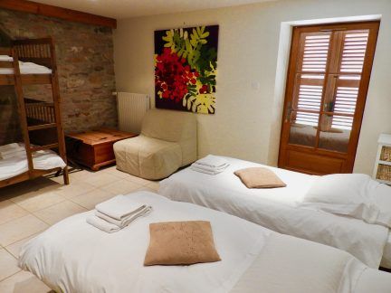 La Roche is our largest property with 5 bedrooms and 3 bathrooms. It boasts a magnificent south facing covered terrace. Lower ground floor accessed from the courtyard level with two twin rooms (one with twin beds and additional bunks for small children) and bathroom (including shower), ground floor (accessed from external staircase) with fully-equipped spacious kitchen/dining room and access to the terrace, sitting room with wood-burning stove, first floor with twin bedroom, bathroom (including shower), double bedroom and master suite with bedroom and shower room.